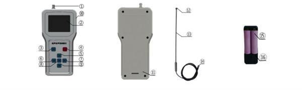 3 | 返回键 | 9 | 下翻键 | 15 | 可充电电池 |